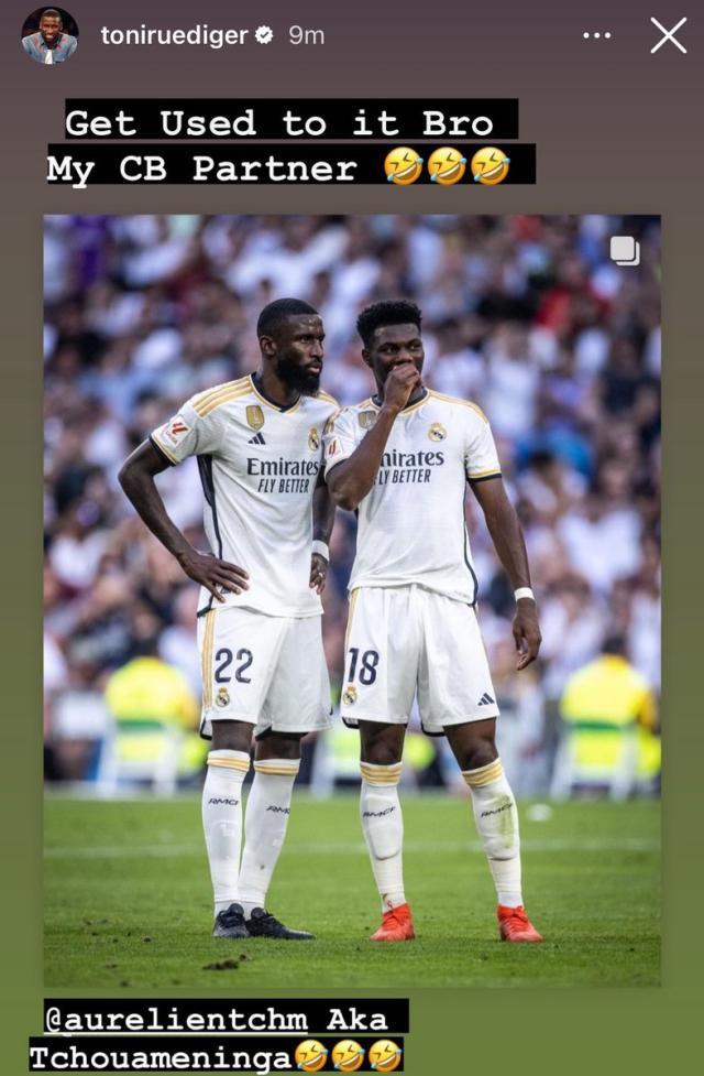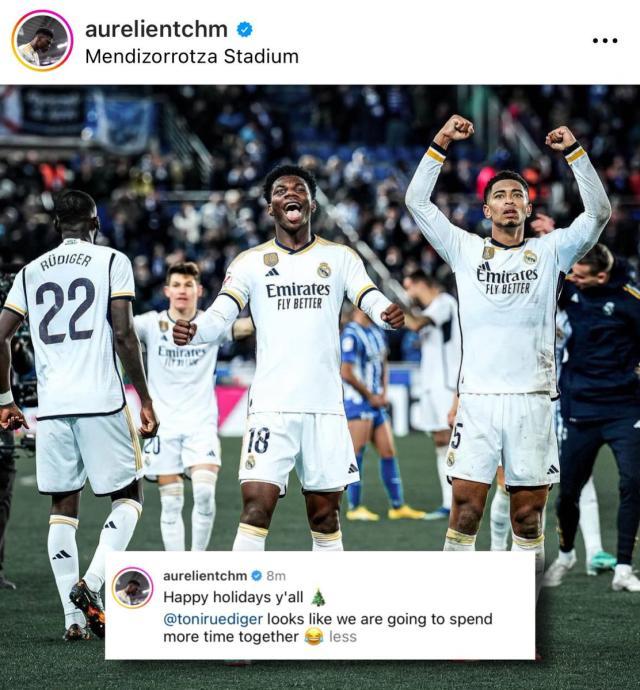 赛后吕迪格和楚阿梅尼又互相在社交媒体上打趣,10月份楚阿梅尼客串了一次中卫,他在发布的社媒状态上圈吕迪格,“别习惯于此兄弟,就这一场!”打完阿拉维斯赛后,吕迪格挖出这条帖子,转发评论道:“习惯吧兄弟,我的中卫搭档叫楚阿梅尼!”楚阿梅尼也有些认命的意思,“假期快乐!@吕迪格,看来咱俩要在一起更长时间了!”
